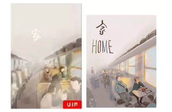 相反,“赶春”(左图)和“回家”(右图)两幅作品的表达内容与原创作品构成实质性相似,可以采取进一步的诉讼维权活动。如,“赶春”和原创的主体人物均为一女孩和一群人,其构图也相同;“回家”和原创的主体物品均为行李箱子,占据整个画面的中央。
