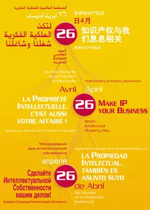 为广泛增进人们对知识产权的认识,世界知识产权组织(WIPO)的成员国在2000年选择4月26日——1970年《WIPO公约》生效的日子为世界知识产权日。
