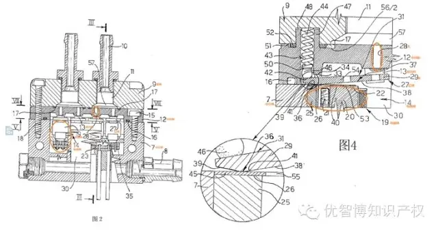 复审委进一步认为,权利要求1所述的”所述电磁阀(14)包括所述可燃气体的至少一个排出孔(28)”中的电磁阀14是包括磁芯部分和阀体部分,所以认为权利要求1所述的电磁阀14是包括中间板、遮挡件等。